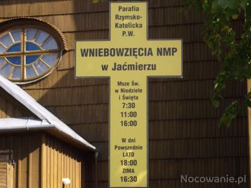 tablica informacyjna / logo kościoła - przed wejściem do świątyni, tam przez kruchtę. (Jaćmierz)