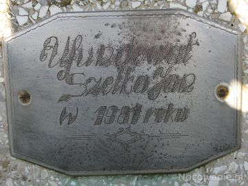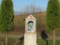 tablica informująca o fundatorze kapliczki dziękczynnej przydrożnej - "na Szczepówce" - współczesne. Kapliczkę w tym miejscu wybudował Jan Starego już w 1912r., (Pobiedno)