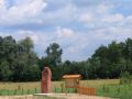 Tablica upamiętniajaca miejsce urodzenia Witolda Gombrowicza we wsi Małoszyce.
