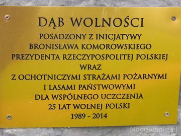 tablica upamiętniająca posadzenie "Dębu Wolności" - na głazie przy muzeum. (Myczków)