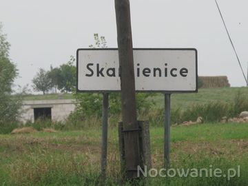 Tablica z nazwą miejscowości: SKARBIENICE. 500m. dalej znajduje się polski lekki schron bojowy nr 8. Armii "Poznań" z 1939r. Bez wylanego stropu. SKARBIENICE k. ŻNINA.
