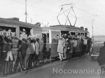 Tak się jechało w Warszawie w 1955r na Stadion X-lecia - (na moście Poniatowskiego).
