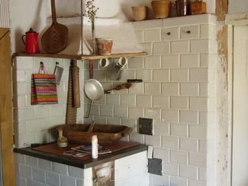 Takie kaflowe "kominy" można znaleźć w chatach Turnej-po renowacji są do użytku i nadają urok chacie (Turna)