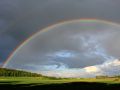 tęcza nad Chomiążą z widokiem na Wzgórze Cvilin (Czechy) i na miejscowy kościółek (Chomiąża)