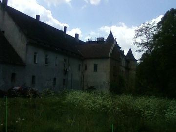 To zdjecie jest zrobione od tyłu przybudówki pałacowej, obok jest wiazd na dziedziniec