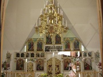 Tradycyjne, współczesne wyposażenie świątyni. (Krynica-Zdrój, Krynica Górska)