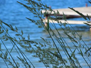 Trawa i w tle pomost na jeziorze (Borsk)