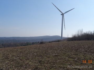 turbina wiatrowa - praca śmigła na wysokości : 34 - 126 metrów, śmigło waży ok. 10 ton. (Pobiedno)