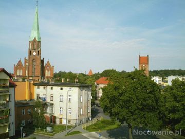 Tutaj mamy wieże dwie i czubek Baszty. (Lębork)