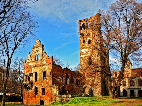 Z XIV wieku pochodzą najstarsze fragmenty zamku wybudowanego w stylu gotyckim. W późniejszym okresie, około XVI wieku zamek rozbudowano, zmieniając jego styl na renesansowy. Został on częściowo zniszczony podczas II wojny światowej, ale do dzisiaj pozostały po nim jedynie ruiny, świadczące o jego dawnej świetności.