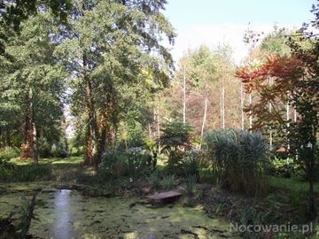 ubogacona roślinnością wodną i szuwarową : tafla i linia brzegowa stawu.Tam biały kwiat żabieńca babki wodnej i drobniutkie białawe kwiatki rzęśli wiosennej, która mimo swej nazwy kwitnie stosunkowo długo. Pochowały się owocostany rdestnic, wywłóczników i innych roślin zanurzonych, przekwitły kwiaty rogatka szorstkiego, obsychają wierzchołki liści roślin pasa oczeretów. Puch się sypie.