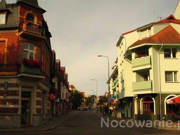 Ulica Gdańska biegnaca pod górę. Z lewej strony zachowana stara kamienica. Prawą stronę ulicy w 1945r. Rosjanie puścili z dymem.