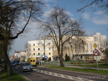 Ulica Ks. J.Kompały i al. Powstańców wlkp na zdjęciu Kino Komeda i hotel Komeda w dali ul. F.Chopina. (Ostrów Wielkopolski)