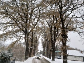 Ulica Wojska Polskiego w grudniu. Po prawej stronie stacja paliw. Kilka kroków dalej market Dino.  (Sulików)