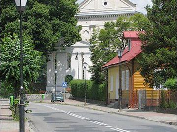 Ulicę Kościelną zamyka barokowy kościół parafialny p.w. św. Józefa Oblubieńca zbudowany w latach 1676 - 1728.