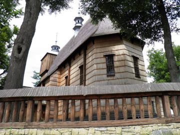 Unikatowy w skali światowej zespół kościelno-plebański . Drewniany kościół parafialny pw. Wszystkich Świętych powstał w XV lub XVI wieku . Umieszczony na liście światowego dziedzictwa ludzkości UNESCO.