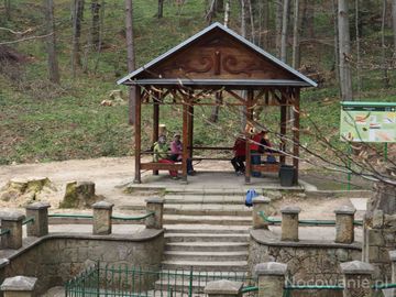 urokliwie,wprost ładnie i jakby bajecznie - ale czy te drzewa musiały być wycięte? - przy pomniku przyrody "Bełkotka". Kiedyś na obelisku z głową poety W.Pola n (Iwonicz Zdrój)