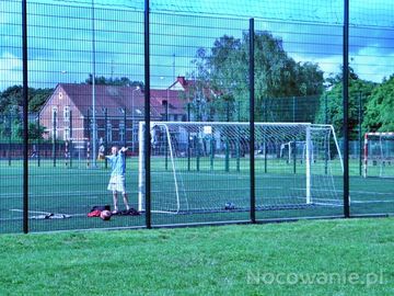 Urywek Al. Zwycięstwa widziany przez pryzmat "Orlika"przy boisku LO. (Lębork)