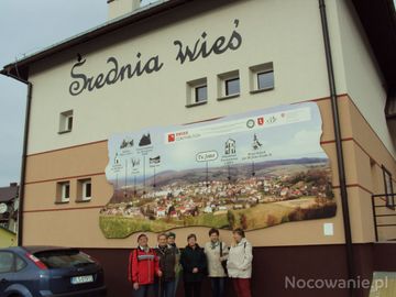 w centrum wsi: plansza prezentująca akcenty godne zwiedzenia, poznania - na wyjątkowo dobrze / dokładnie prezentującej się na zdjęciu miejscowości - a jest to p (Średnia Wieś)