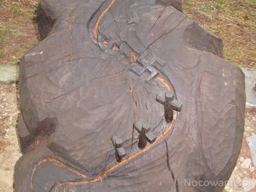 W galerii rzeźby plenerowej "Quo-vadis" Bogusława Iwanowskiego - Karol Wojtyła - na życiowym szlaku - swastyka symbolizuje obóz pracy przymusowej, kamieniołom w (Tyrawa Wołoska)