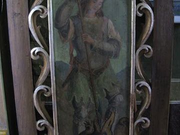 w ikonostasie - obok wrót diakońskich - św. Michał Archanioł pokonuje smoka.