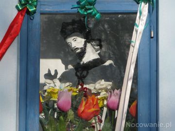 w kapliczce k/dworu /po drugiej stronie ulicy/: rzeźba św. Jana Nepomucena.