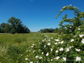 W mroźną zimę trochę czerwcowego słońca i kwitnące dzikie róże .Teren zalewowy między wałem Wisły i jej lewym brzegiem . (Brzostków)