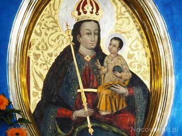 w nastawie ołtarza głównego : Łaskawy Obraz - Matka Boża czczona jest jako Królowa Nieba i Ziemi. Obraz pochodzi z XV wieku, do jaśliskiego kościoła z pogranicz (Jaśliska)