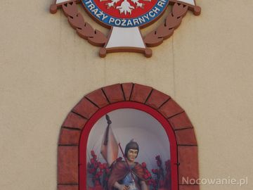w niszy zewnętrznej murów remizy strażackiej : figura św.Floriana /przy temacie: zapraszam do galerii wsi: Besko, Jankowce, Mymoń, Wzdów/. Powyżej : krzyż tzw. maltański w kartuszu herbowym służb strażackich.