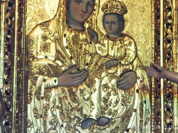w ołtarzu bocznym - po stronie północnej : obraz Matki Boskiej z Dzieciątkiem, okryta sukienkami - w kunszcie metaloplastyki.