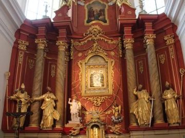 w ołtarzu głównym : Cudowny Obraz Niepokalanej Matki Dobrej Nadziei, Maryja Niepokalana z Dzieciątkiem z kościoła parafialnego w Tuligłowach. Obraz pochodzi z X (Tuligłowy)