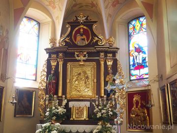 w ołtarzu głównym : obraz / zastawa cudownego obrazu. Pozwolę sobie pouczyć, iż gdyby kościół był otwarty, bo np. sprzątanie, wietrzenie lub czas między nabożeństwami - to należy pójść do księdza, który może spowodować, iż można będzie być świadkiem "odsłonięcia obrazu będącego kultem".