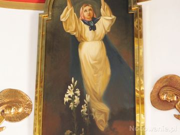 w ołtarzu głównym : obraz przedstawiający scenę Wniebowzięcia Najświętszej Maryi Panny - takie też wezwanie przypisane temu kościołowi.