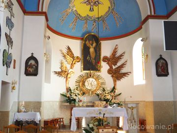 w ołtarzu głównym : obraz przedstawiający scenę Wniebowzięcia Najświętszej Maryi Panny - takie też wezwanie przypisane temu kościołowi. Polecam też - przy temac (Wróblik Królewski)