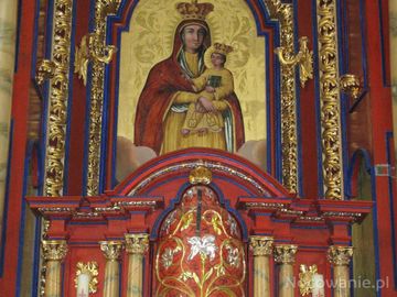 w ołtarzu głównym: obraz Matki Boskiej Szkaplerznej, poniżej tabernakulum obrotowe - teraz "zakryte".