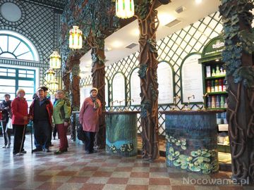 w pijalni wód mineralnych - po prawej na ścianie tablice, na nich informacje o wodach, wskazania do picia przy konkretnych schorzeniach. Warto podkreślić, że o uzdrawiających właściwościach zdrojów iwonickich pisał m.in. dr Conradi - nadworny lekarz królowej Marysieńki Sobieskiej a także dr Jan Denis - lekarz przyboczny króla francuskiego Ludwika XIV.