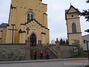 w przerwie murów - schody przed wejściem do kościoła. (Bukowsko)