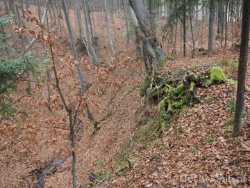 w siodle zbocza Gór Słonnych : buki "kroczące", woda w strumieniu z "nutą" solankową, w miejscach bardziej dostępnych służy jako wodopój leśnych zwierząt zaś po (Hołuczków)