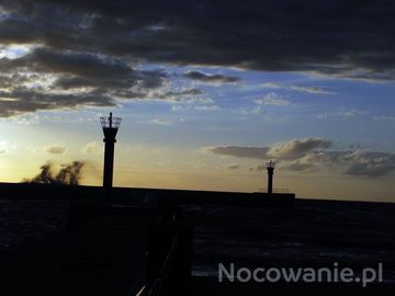 W sztormową pogodę fale przelewają się przez falochron. Jest na co popatrzeć.