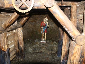 w wyrobisku, przy sztolni : kapliczka - może z figurą św. Szczepana z Jezuskiem - no bo święty ten jest patronem kamieniarzy, bo poniósł śmierć męczeńską przez ukamieniowanie.