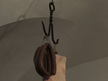 W zamkowej spiżarni nadal wiszą połcie słoniny i pęta kiełbasy (Dębno)