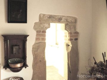 wejście do latryny - tak to się nazywało - ujęte kamiennym gotyckim portalikiem zamkniętym łukiem trójlistnym ściętym.