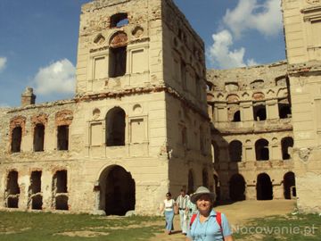 Wejście do zamku prowadzi przez wieżę wjazdową i portal z czarnego marmuru. Po obu jego stronach płaskorzeźby przedstawiające krzyż i topór. Krzyż to wyznanie w (Ujazd)