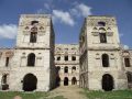 Wejście do zamku prowadzi przez wieżę wjazdową i portal z czarnego marmuru. Po obu jego stronach płaskorzeźby przedstawiające krzyż i topór. Krzyż to wyznanie w (Ujazd)
