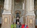 wewnątrz synagogi - potężne cztery filary z rzeźbionymi kapitelami - tu w środku sali dla mężczyzn, tam była bima - podwyższenie z kolumnami - tu widoczne filary - i zadaszeniem na górze - na niej stał kantor i dyrygował chórem chłopięcym i tam stał rabin i celebrował liturgię nabożeństwa w obrządku mojżeszowym i tam była Tora - żydowska księga wierzeń z cytatami z Talmudu.