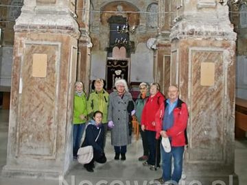 wewnątrz synagogi w sali modlitewnej dla mężczyzn pomiędzy filarami - tam ongiś umiejscowiona była bima - po naszemu - mównica, główne i centralne a zatem najb (Rymanów)