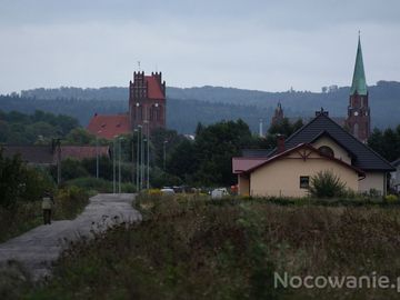 Widok na dwa najstarsze lęborskie kościoły z sąsiedniej Nowej Wsi Lęborskiej. (Lębork)