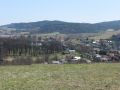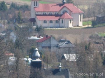 Widok na Hoczew - od strony płd.wsch. - wśród zabudowań: kościół pw. Narodzenia NMP w Średniej Wsi , najstarsza drewniana świątynia katolicka w Bieszczadach - (Hoczew)