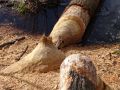 Widok na miejsce po dawnym strzeżonym przejeździe kolejowym, pociąg opuszcza toty stacji jadąc w kierunku Olsztyna. (Gamerki Wielkie)