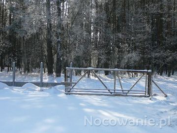 Widok na ośnieżony las z budującego się siedliska. (Puchałowo)
